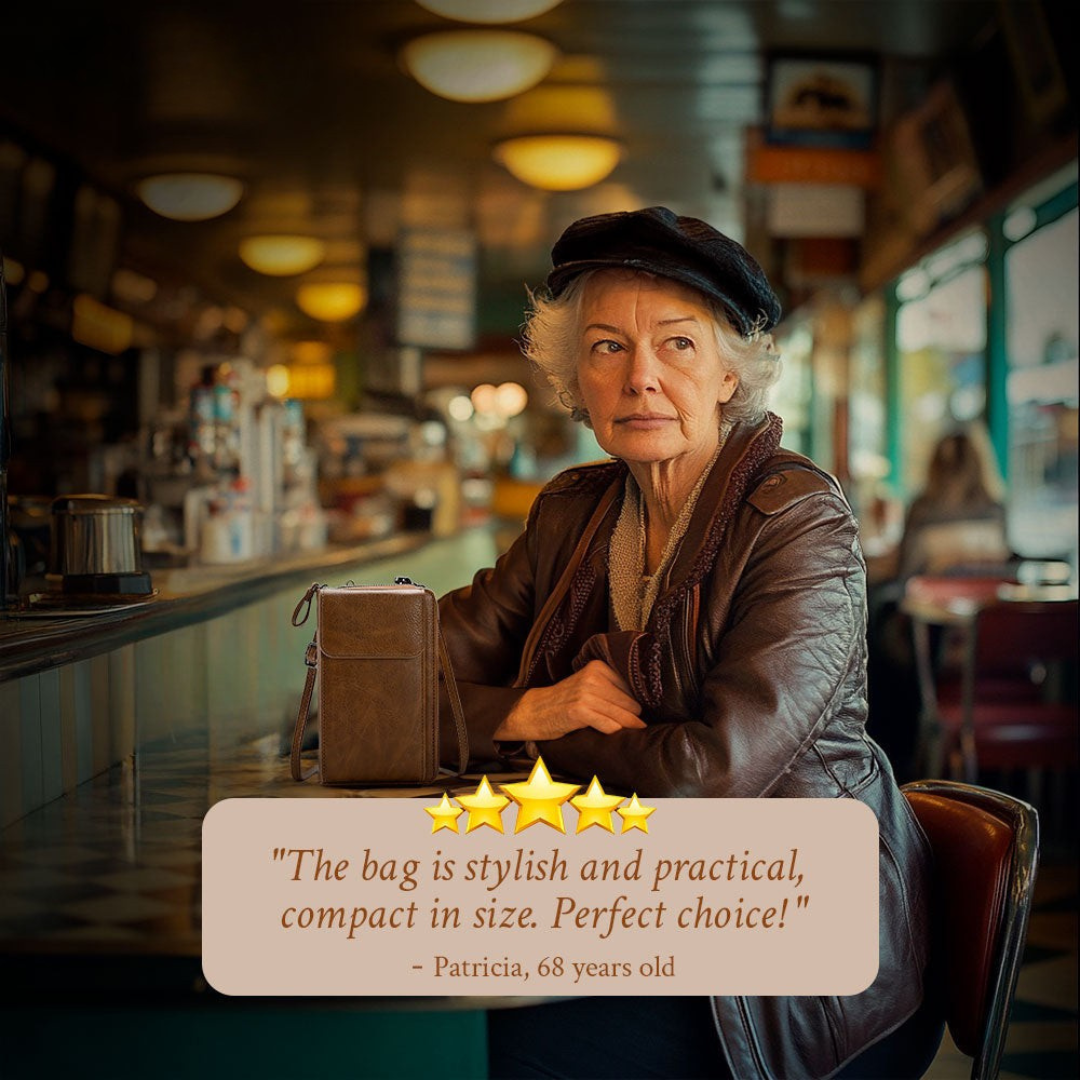 • Premium Leather: Nicole’s Compact is made from the finest full-grain leather, ensuring durability and a luxurious touch. This bag is designed to age beautifully, becoming a cherished companion over time.